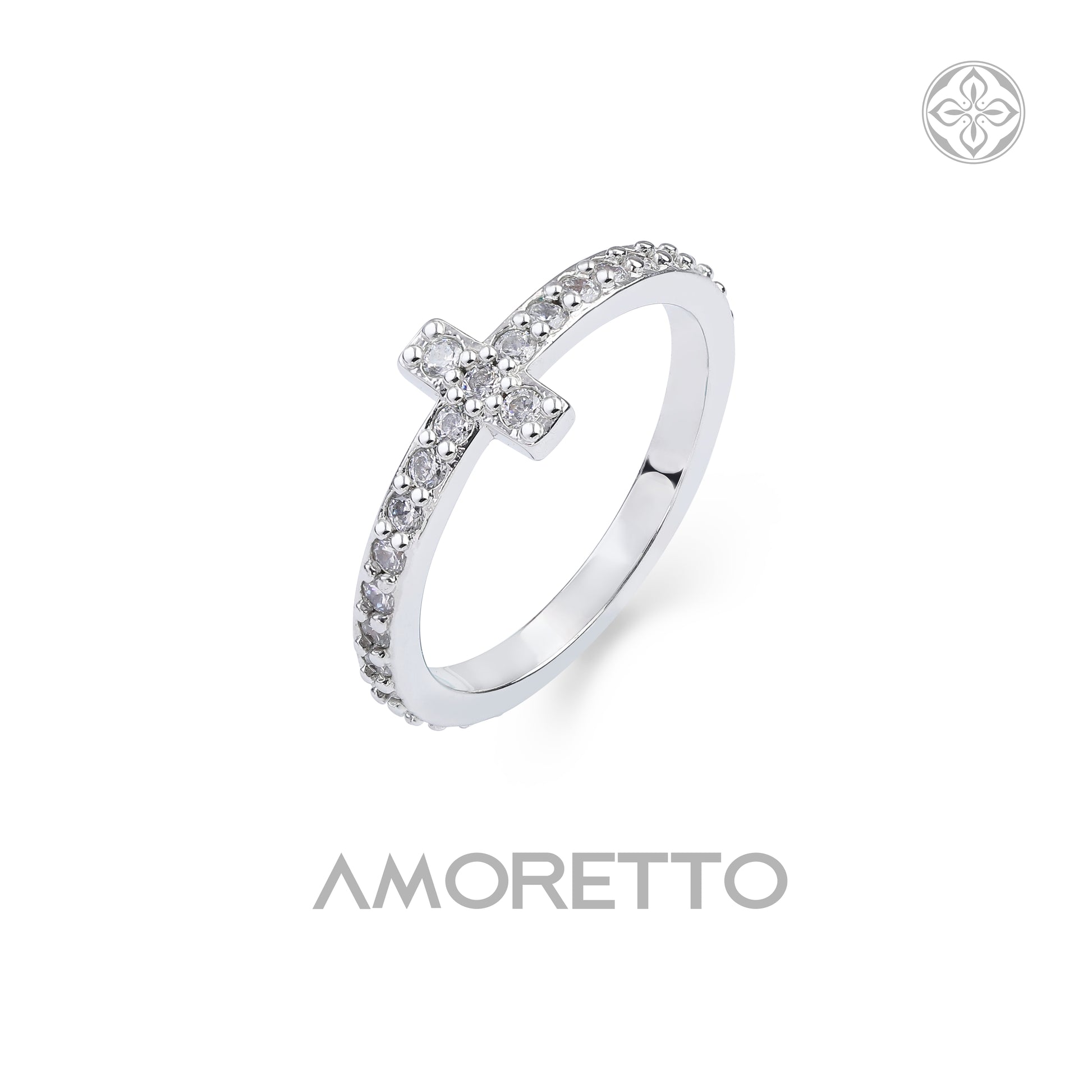 Cross Pavé Ring - HCD-Encrusted Slim Band with Offset Cross Accent Minimalist Design
