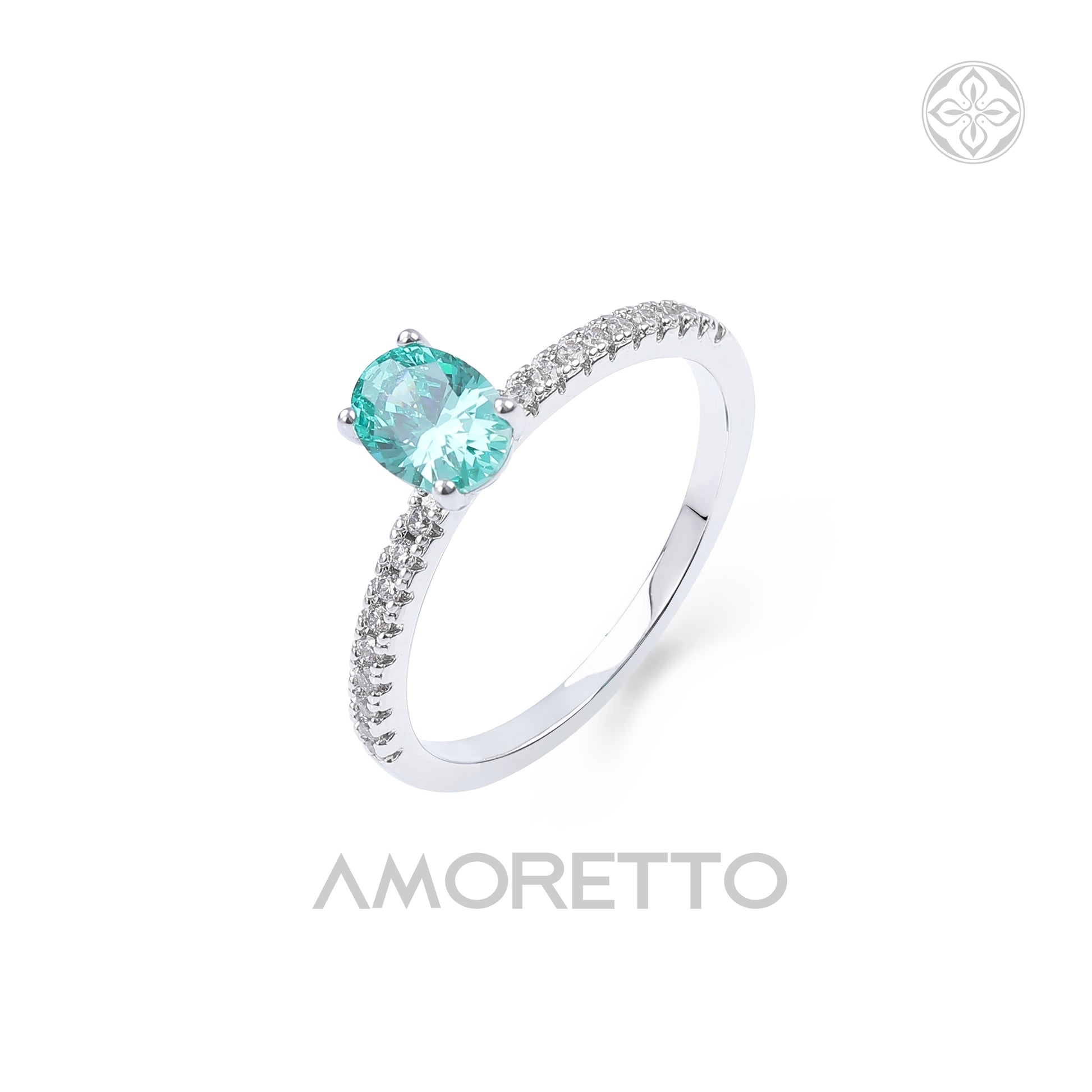 • Center Stone: Brilliant-cut Paraiba Green HCD